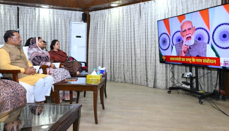 रायपुर में मुख्यमंत्री सहित जनप्रतिनिधियों ने सुना प्रधानमंत्री का विशेष संबोधन