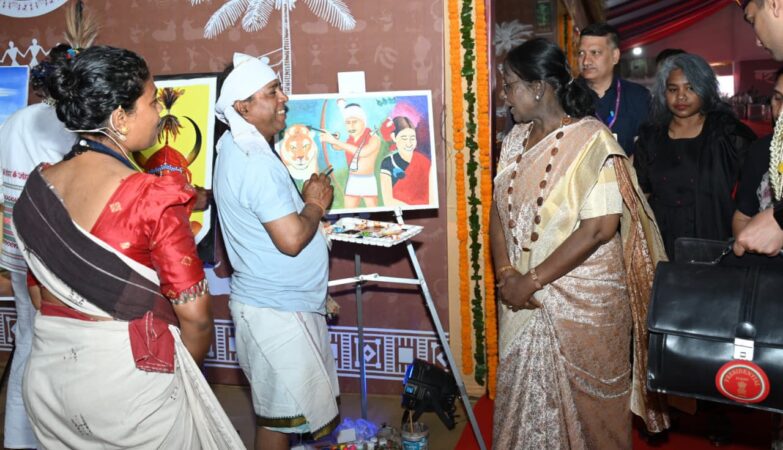 जनजातीय परंपराओं और संस्कृति पर आधारित भव्य प्रदर्शनी का राष्ट्रपति श्रीमती द्रौपदी मुर्मु ने किया अवलोकन