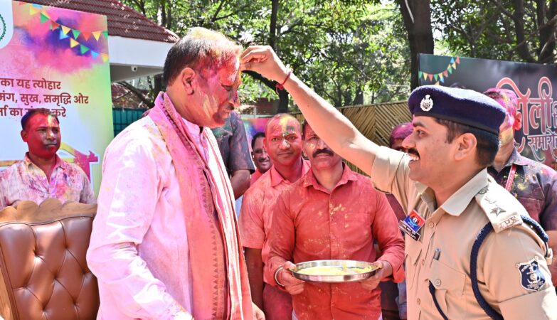 मुख्यमंत्री निवास में होली के रंगों की बौछार: मुख्यमंत्री श्री विष्णु देव साय ने अधिकारियों-कर्मचारियों संग खेली होली